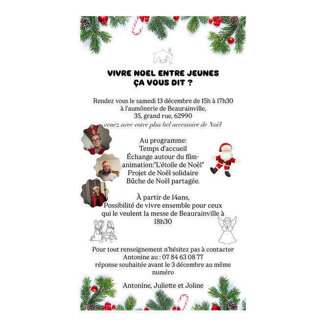 - Les 18, 25 décembre et 1er janvier : pas de jeudi fraternel.